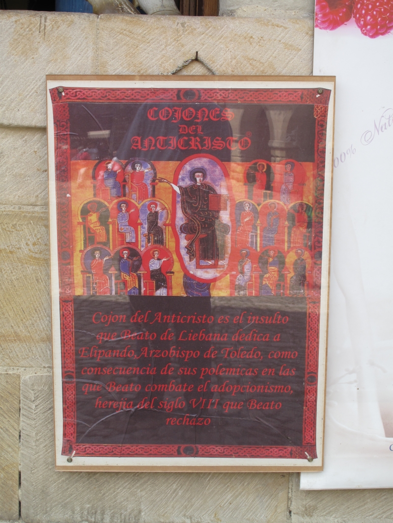 The ‘balls of the anti-christ’ is an insult from the eighth century which was levied at Archbishop Elipando of Toledo by the Beatus of Liebana (Cantabria) for his thesis that Jesus Christ was the adopted son of God rather than the natural son of God. Why this manifests itself as sweets is anyone’s guess.
