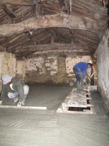 Then the concrete arrived to shouts of ‘hormigón, hormigón’ (it just means concrete). One hundred wheel barrows full later and Pepe, Facundo and Alejandro were re-distributing, agitating and flattening.
