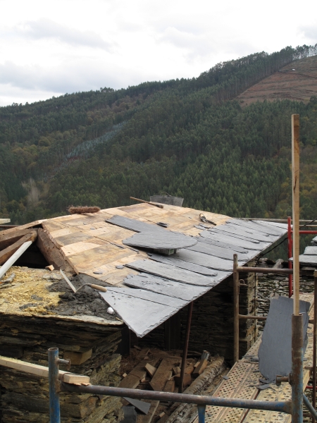After safely depositing the hire car in Lugo, doing a bit of shopping (you can tell where your priorities lie when a few tools from the hardware shop come to double what you spend on a weeks food) and wandering glazed eyed through the Spanish version of Comet, I thought I’d better stop up at the house on the way back to Taramundi and snap a couple of photos before they finish it and I have no tale to tell.