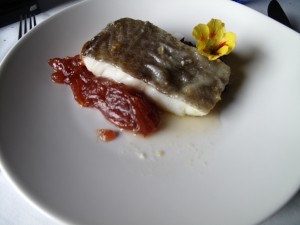 The main course for me was bacalao (cod) with onion marmalade and apple puree, garnished with a spicy fresh flower, and cooked to perfection fusing three strong flavours perfectly. My fellow diners ordered a couple of different pork dishes (one was pork cheeks), and one of the largest steaks you’ll see this side of an Aberdeen Angus.