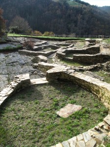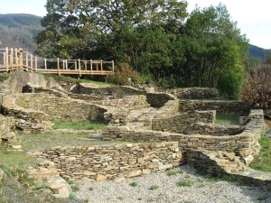 Reputed to have been built in the eighth or seventh century B.C. it occupies the edge of the hill with a brilliant view down two valleys, but still benefitting from some shelter from higher ground to the north. The site is around two hectares in size making it a major bronze age settlement, and contains an area of baths and a sauna. The site was protected all around by a large (6m wide by 4m deep) defensive trench over which the modern road now runs. I’d hypothesise that the castro originally continued further up the hill towards the main road through Taramundi but that centuries of building and habitation will have wiped out any further trace.
