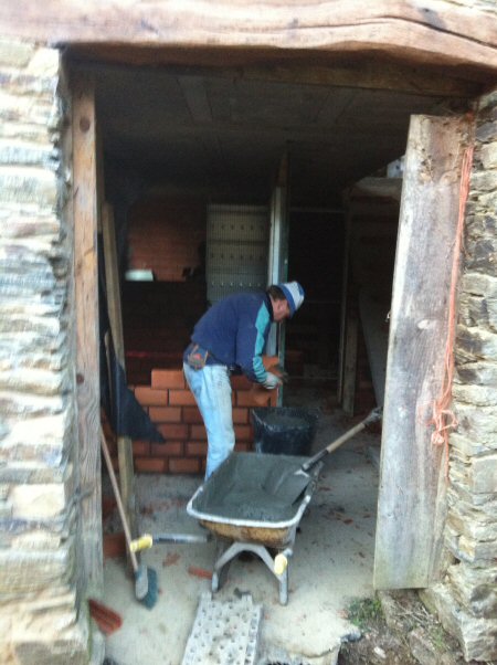 But in reality I didn’t care because when I arrived on site at 8:30 this morning Angel and my new friend from Mondoñedo, Obi ( desperately want to add Wan Kenobi each time I say it), were hard at work installing the tube for the bathroom extractor and hiding it behind a new section of traditional stone. This wall will eventually be left as natural stone, so it is important that the work looks authentic and I am delighted that it is Angel who is doing it.
