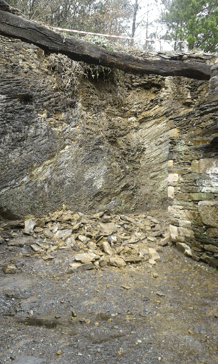 As I passed the entrance to the bread-oven house I was stopped in my tracks. The area that Amanda and I had painstakingly cleared was again full of rubble and clay. Seemingly the rain had collapsed a high wall, newly exposed to the elements after being stripped of thirty years of protective ivy. ‘So that was the bang’, I muttered to myself as the days labouring priority suddenly changed to moving a couple of tonnes of stone and cleaning a load of soggy yellow clay.