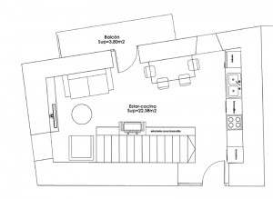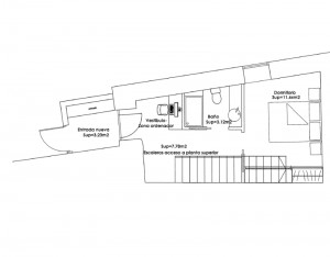 The architect has suggested an upside down house. The bedroom and bathroom with be downstairs where the animals used to live (no comments please!) with the upstairs being the kitchen and living room. We’ll be adding a small entrance hallway and a narrow balcony on the south facing wall to allow us to make the most of the sunshine and the views. Despite its small size (only thirty-five square metres per floor) we think that the architect has done a great job in utilising the space with sliding doors, and cramming in as much storage as she can.